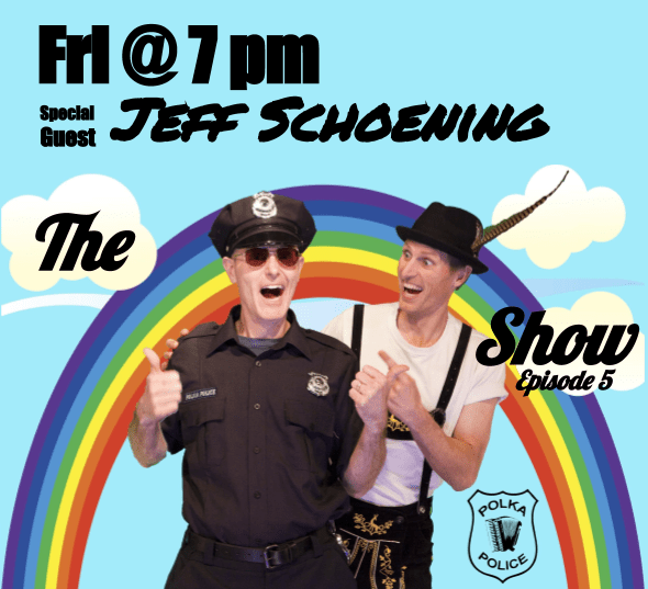Attention Cadets: You do not want to miss The Polka Police Show Episode 5 with multi-talented musical guest, Jeff Schoening, Friday, May 1, 2020 at 7 pm on FaceBook, Instagram and later on YouTube.