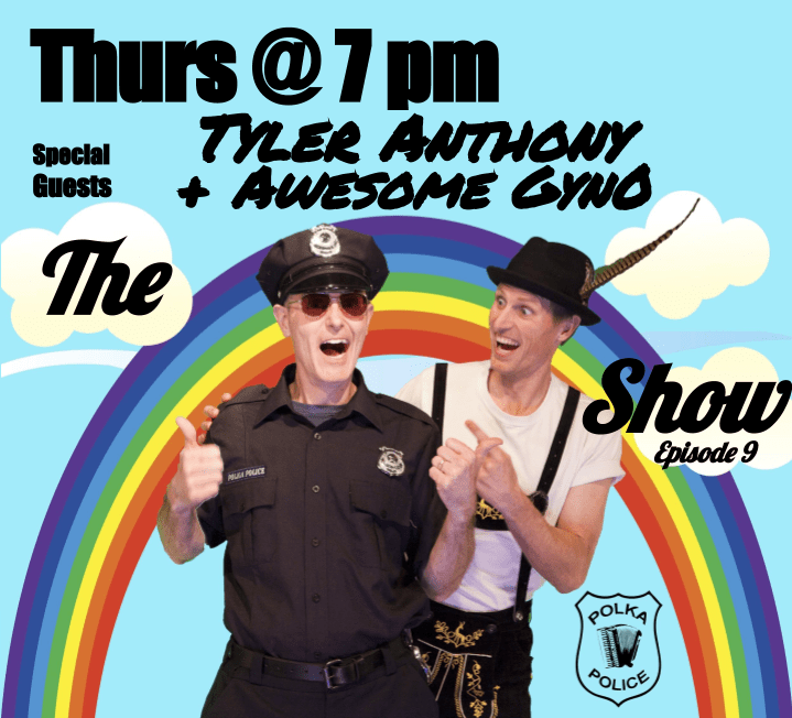 Attention Cadets: The Polka Police Show Episode 9 (Thursday, June 4th at 7 pm) features the musical stylings of Tyler Anthony Plus the boys get to ask Awesome Gyno more questions about the universe – well, their universe. There will be a little Metallica and a polka about a common men’s health issue that affects 1 in 2 members of the Polka Police. Polka out!