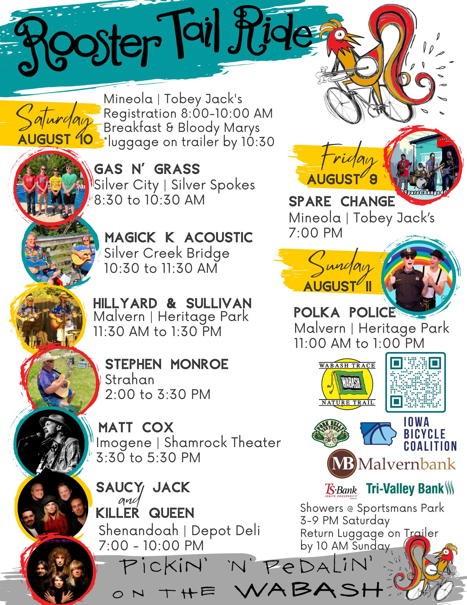 Attention Cadets: The Rooster Tail Ride is happening this weekend and the Polka Police are going to bust it. The PoPo play on Sunday August 11, 2024 from 11 am – 1 pm in Malvern’s Heritage Park but you should check out all the great entertainment all along the Wabash Trace Trail.