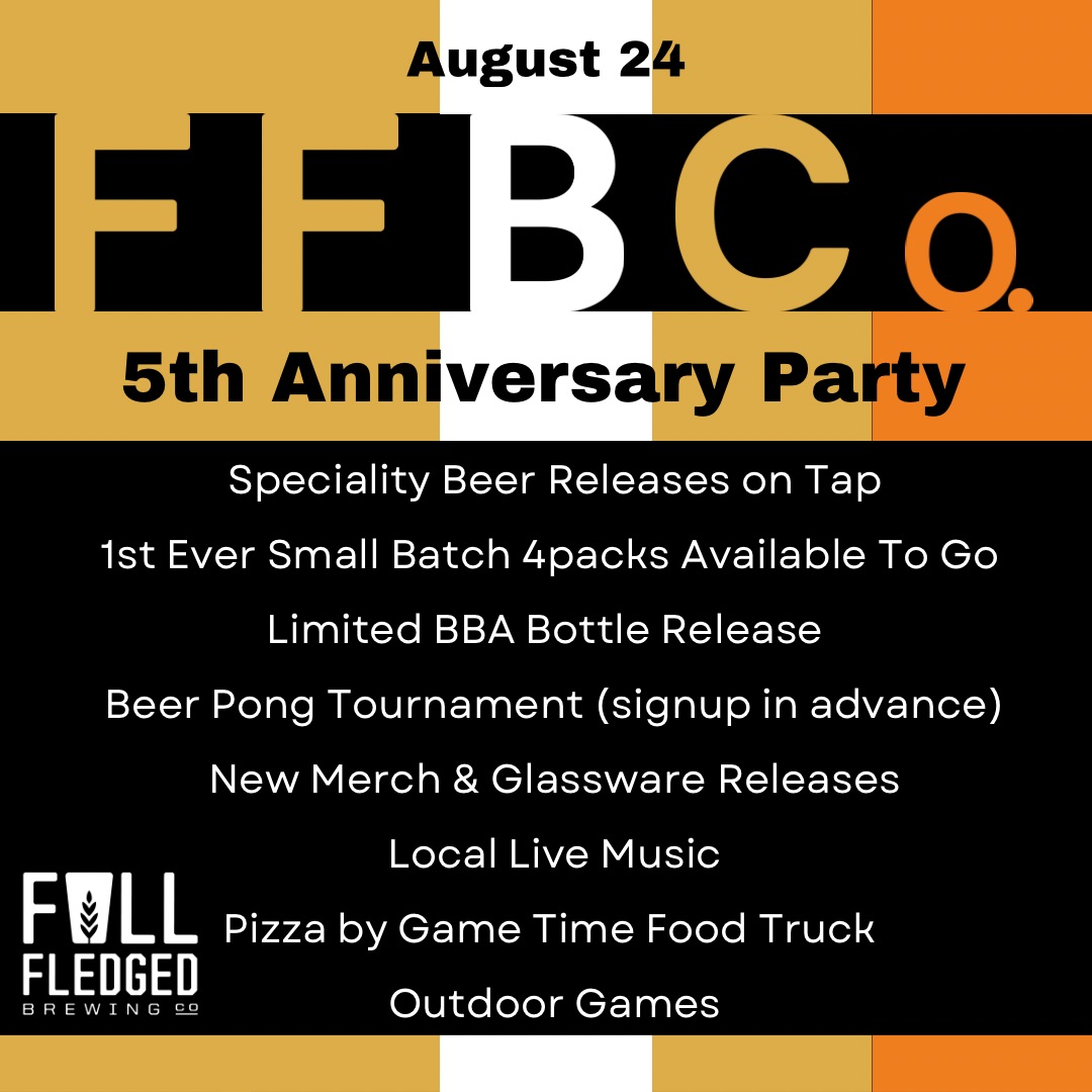 Attention Cadets: Guess who is turning 5 years old on Saturday? Full Fledged Brewery in Council Bluffs, Iowa! It is true – Full Fledged is turning 5 in Saturday, August 24, 2024 and the Polka Police are going to bust ’em. The Polka Police will be rockin’ from 8-10 pm but the party is going on all day. Enjoy live music, folded pizzas by Game Time Food Truck, beer pong tournament and a bunch of beer specials and releases.